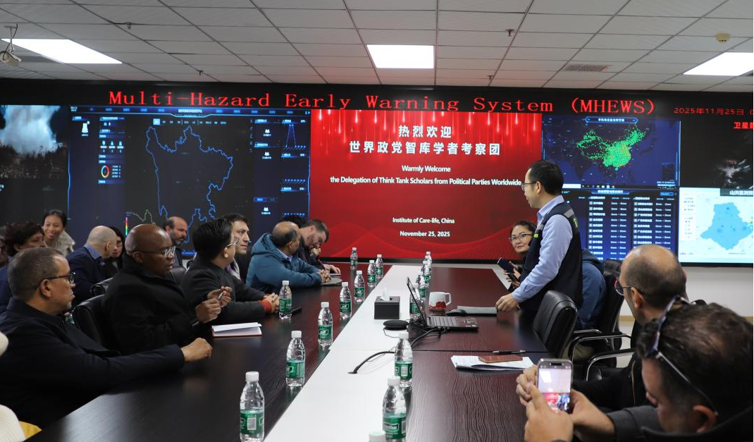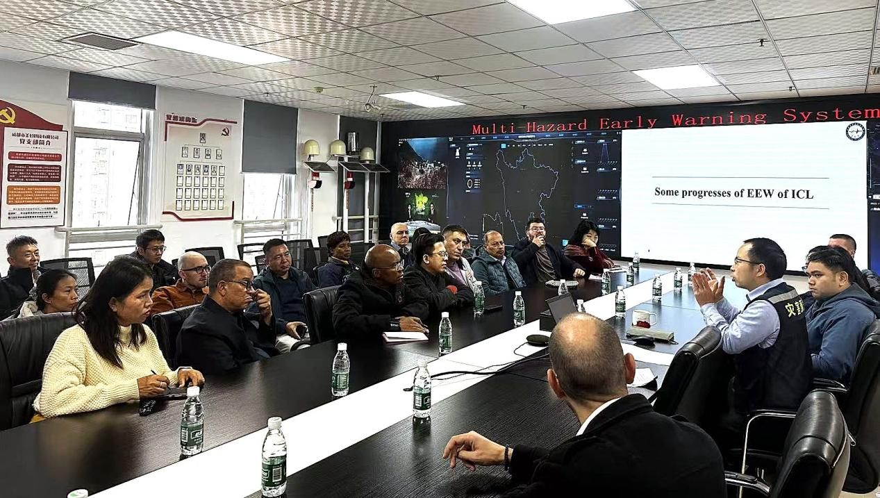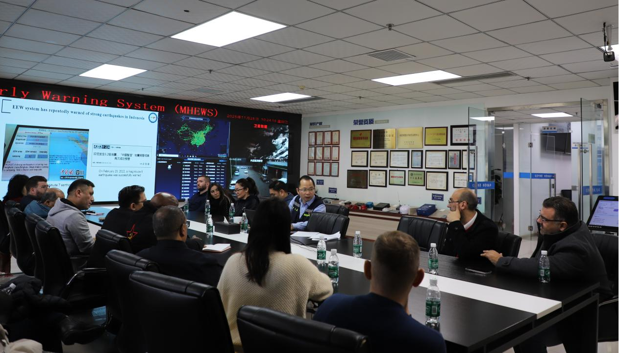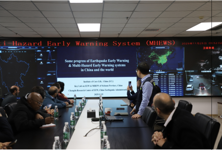 11 月 25 日,在中共中央對(duì)外聯(lián)絡(luò)部、中共四川省委外事工作委員會(huì)辦公室的帶領(lǐng)下,由涵蓋亞洲、歐洲、非洲、美洲4大洲26個(gè)國(guó)家組成的世界政黨智庫(kù)學(xué)者考察團(tuán)到訪成都高新減災(zāi)研究所(以下簡(jiǎn)稱(chēng) “減災(zāi)所”)深入交流地震預(yù)警和多災(zāi)種預(yù)警。